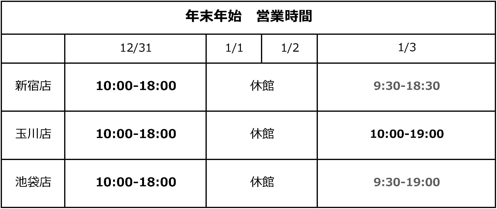 (新宿店の10時のご予約は電話で受付いたします。事前にご連絡ください。)